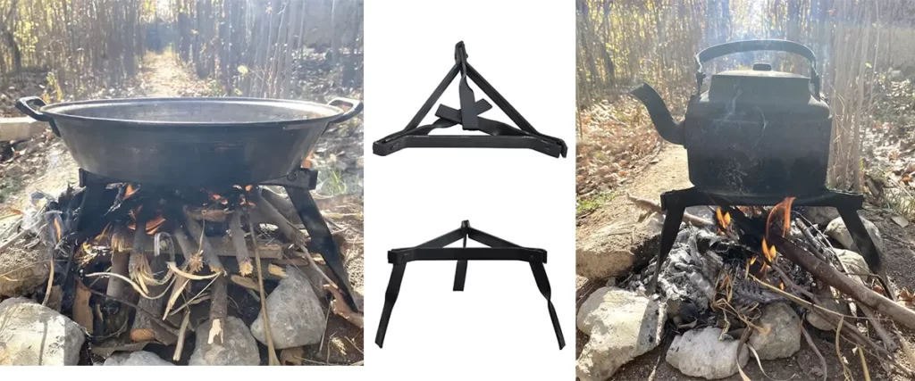 اگر میخوای یه سفر ساده و سبک داشته باشی ولی بتونی آشپزی کنی یا یه چایی آتیشی بخوری حتما به یه سه پایه نگهدارنده ظروف روی آتش احتیاج پیدا میکنی. هر ظرفی ر وبخوای میتونی بذاری روش. حالا چه روی این سه پایه کتری بذارید چه قابلمه یا ماهیتابه. برای همه اینها طراحی شده.